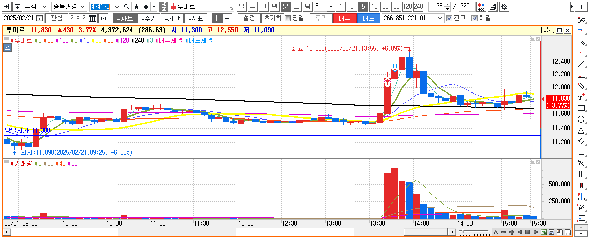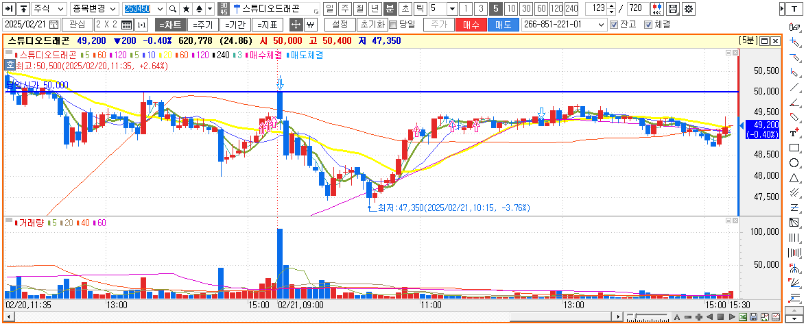 해당주식은 장중 뉴스매매로 인하여 짧게먹고 나와서 관망했습니다.