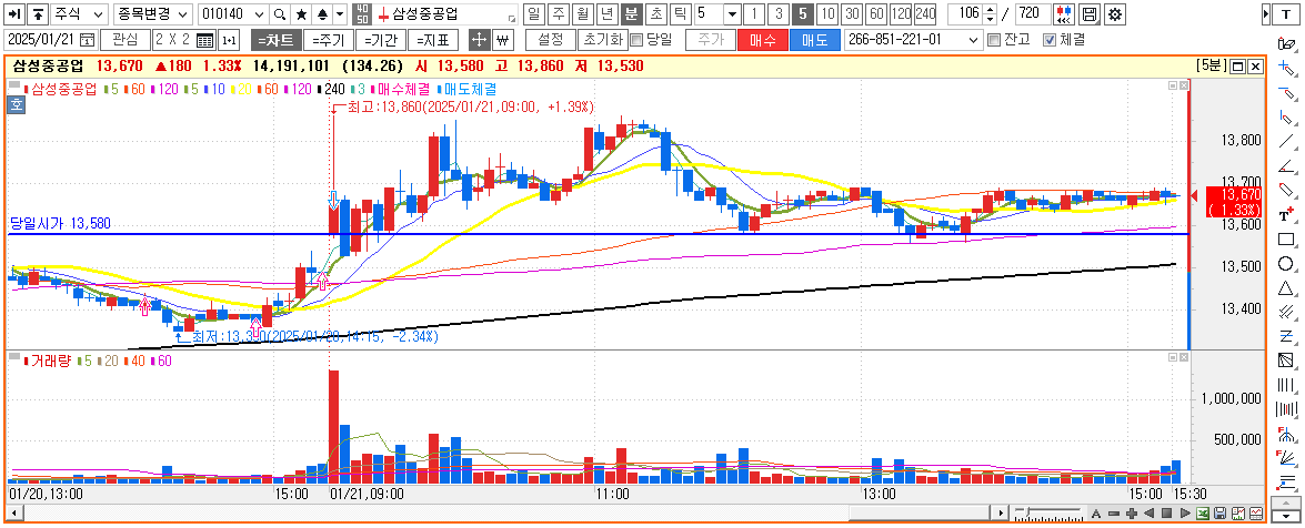 어제 일하다가 종베종목중에 조선주 하나를 잡고싶어 고른 종목이다.