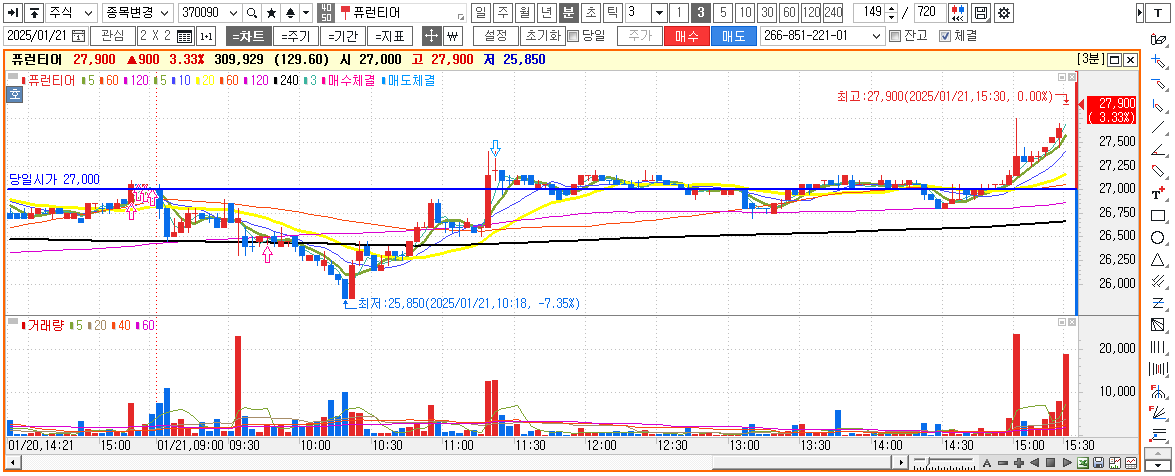 22만원지점부터 분할매도를 생각했었는데 오늘 슛팅이나와